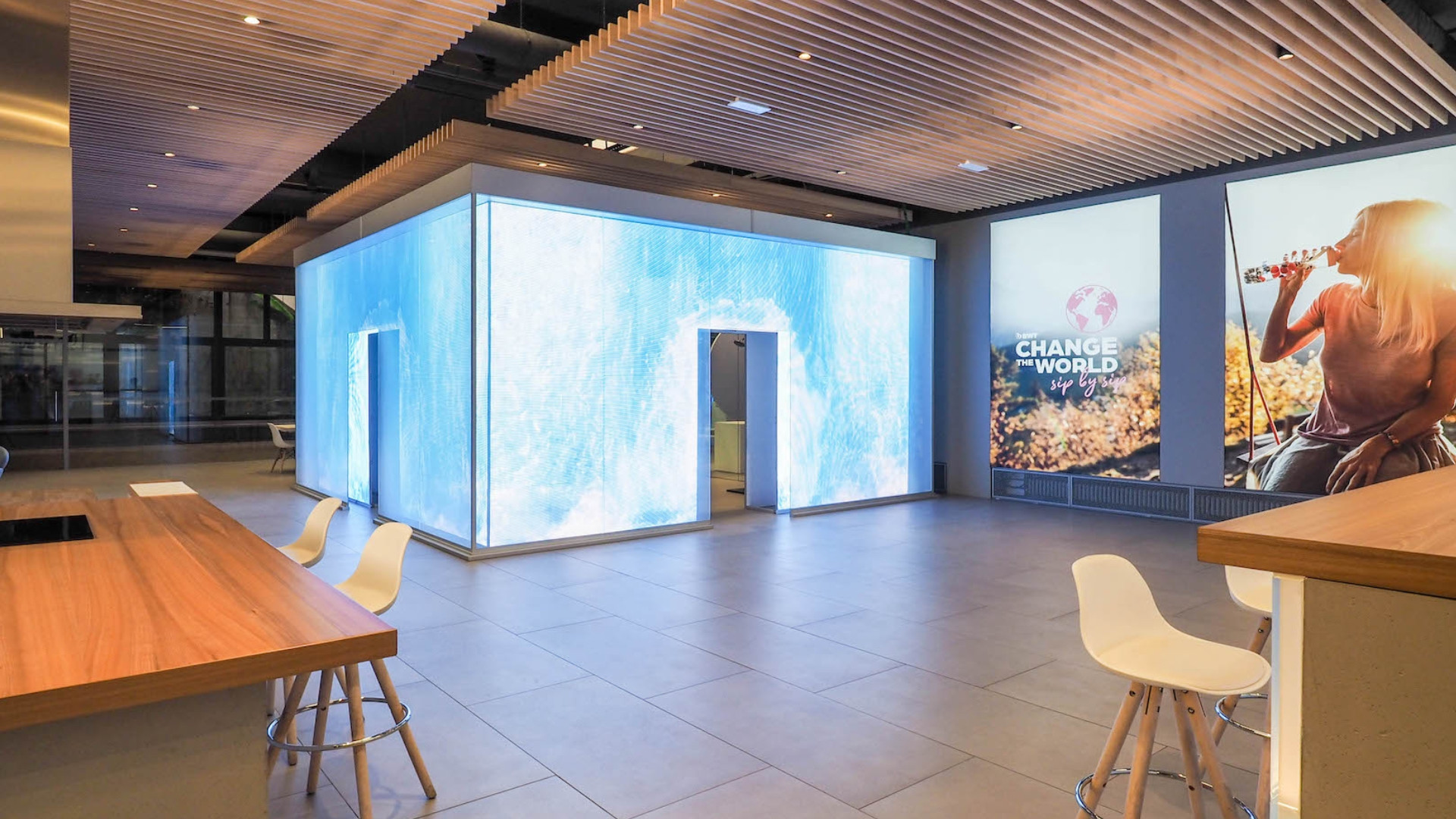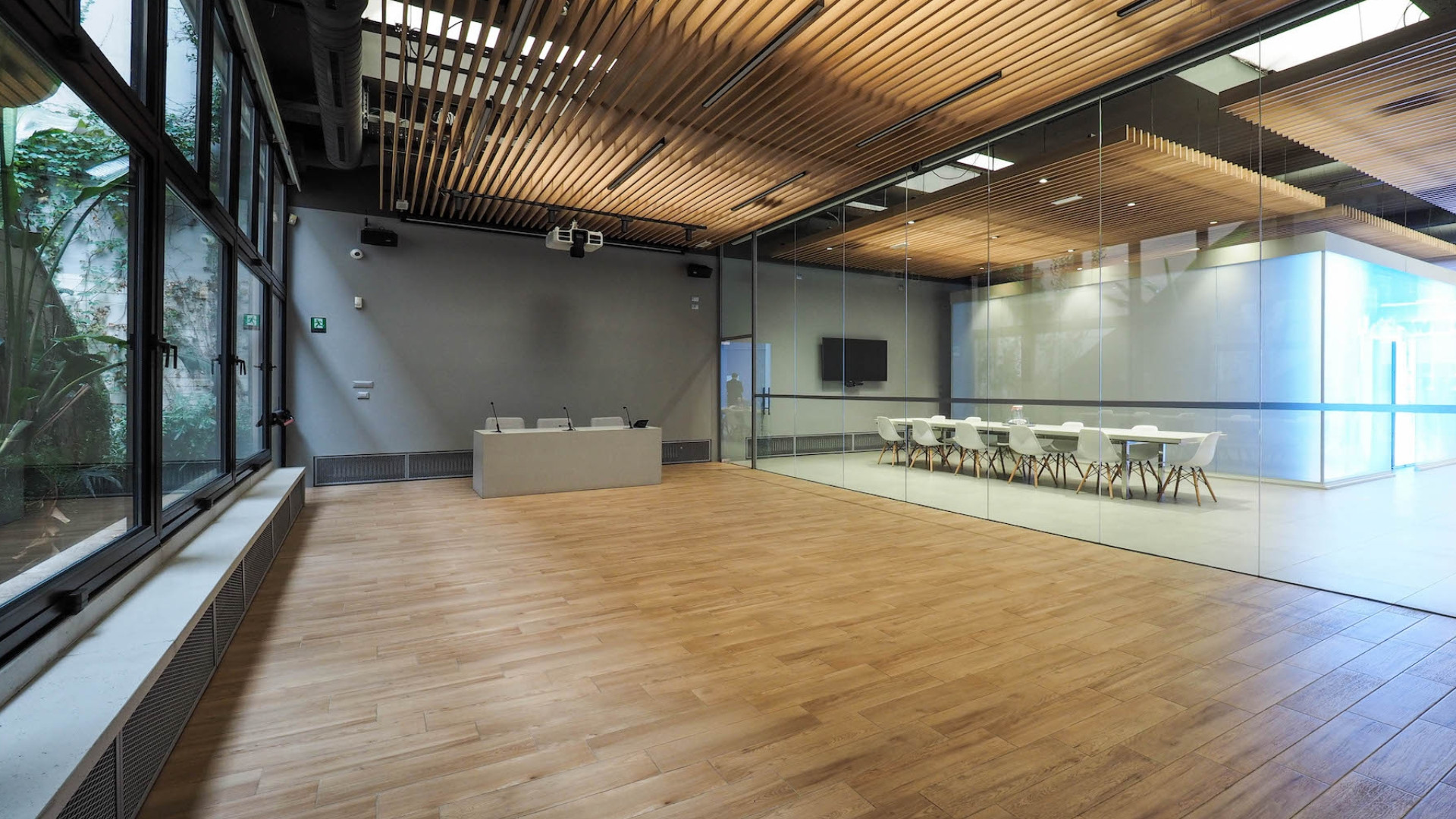Modern location of about 500sqm characterized by a large open space with an open kitchen and a super-equipped bar, embellished with a single glass cube and LEDs, excellent for customizing the event. There are numerous multimedia supports such as monitors and video walls, ideal for playing content. For meeting and conference activities, you can choose between the co-working space (up to 12 people) or the conference room (up to 50 people).